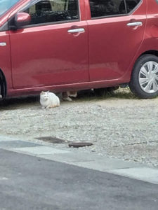 2022年12月7日 アルバム 訪問者🐈 春陽の近くには猫さんたちがたくさんいます。 今日は、遊びに来てくれたようですが、 近づくと・・・ 一匹は隠れちゃいました。 そしてよく見ると3匹います。 3匹目がどこにいるかわかりますか?